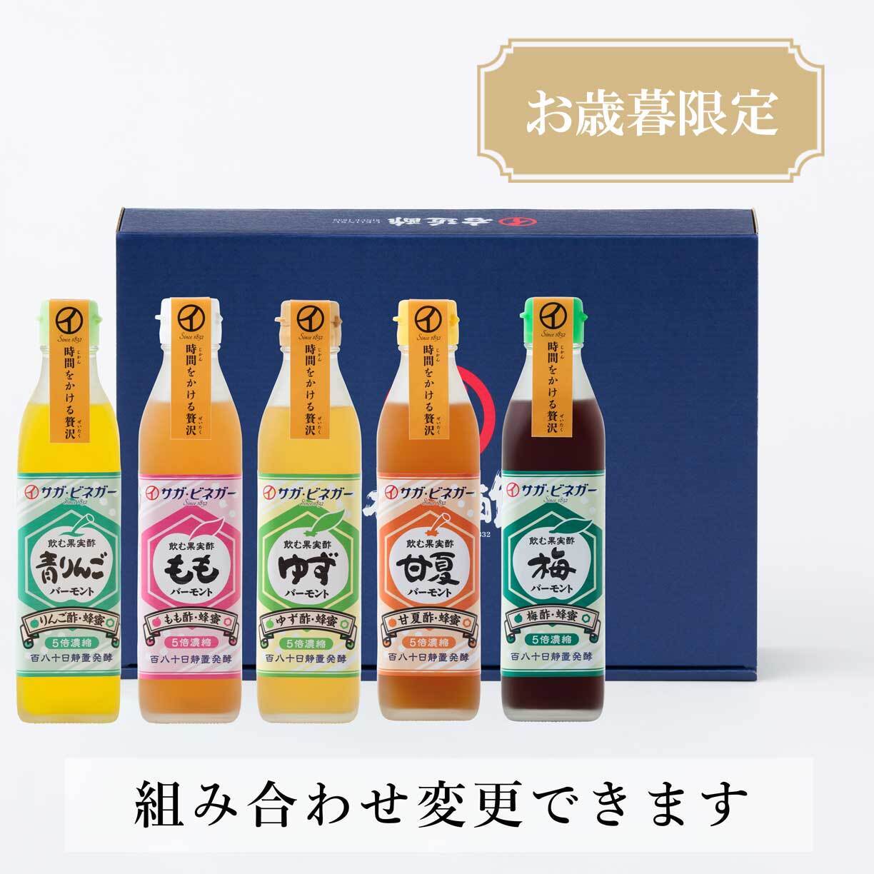 爽やかな香りとスッキリした味わいで好評の青りんごバーモントと、女性に人気が高く冷え性改善や、便通改善に最適なゆずバーモント、ももバーモントを組み合わせています。さらに夏場の疲労回復や、体質改善に期待できるクエン酸たっぷりの梅酢バーモントを厳選しております。