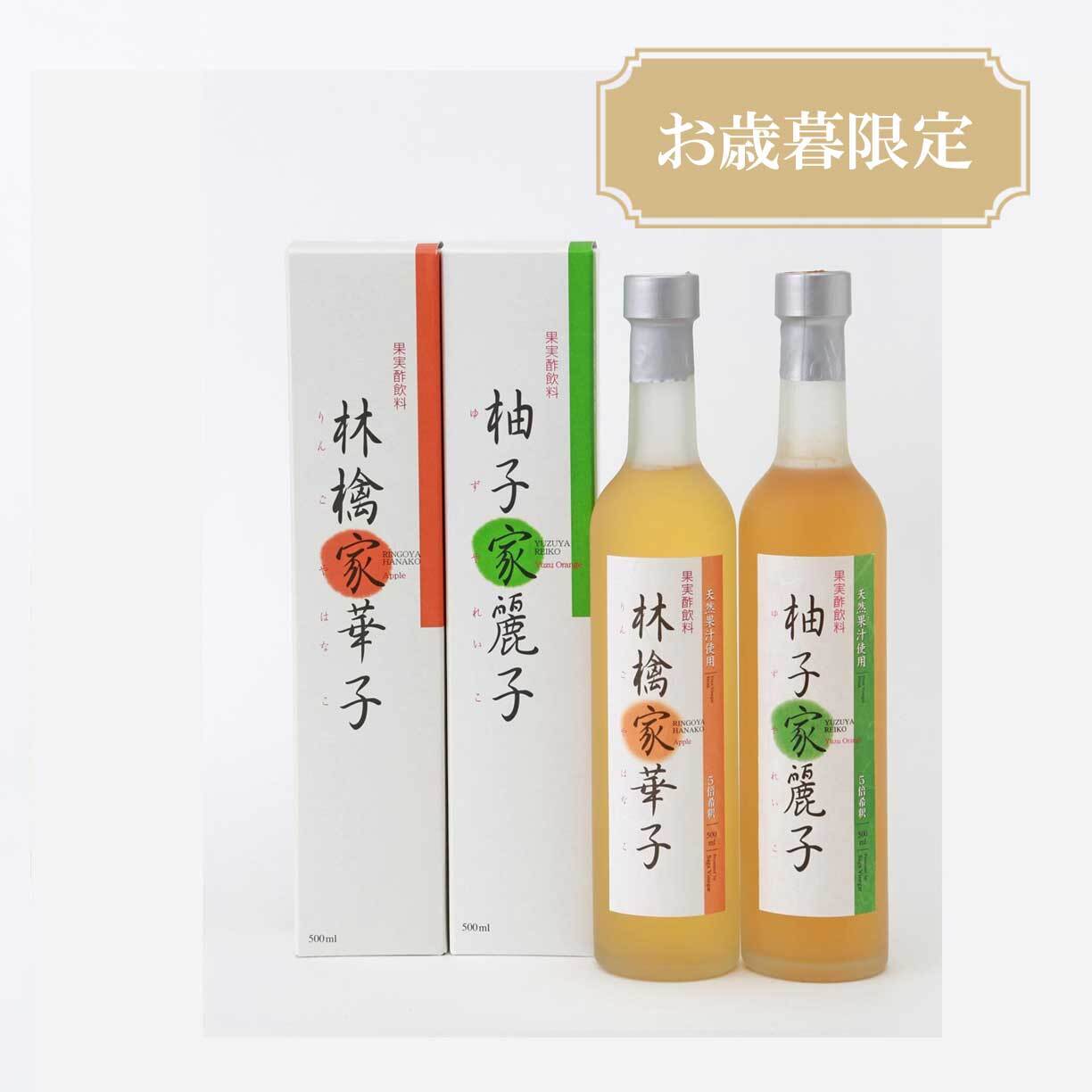 柚子家麗子と林檎家華子のギフトセットです。体に優しく飲みやすい味わいとなっております。お酢が苦手な方や、お子様でも美味しくいただけます。